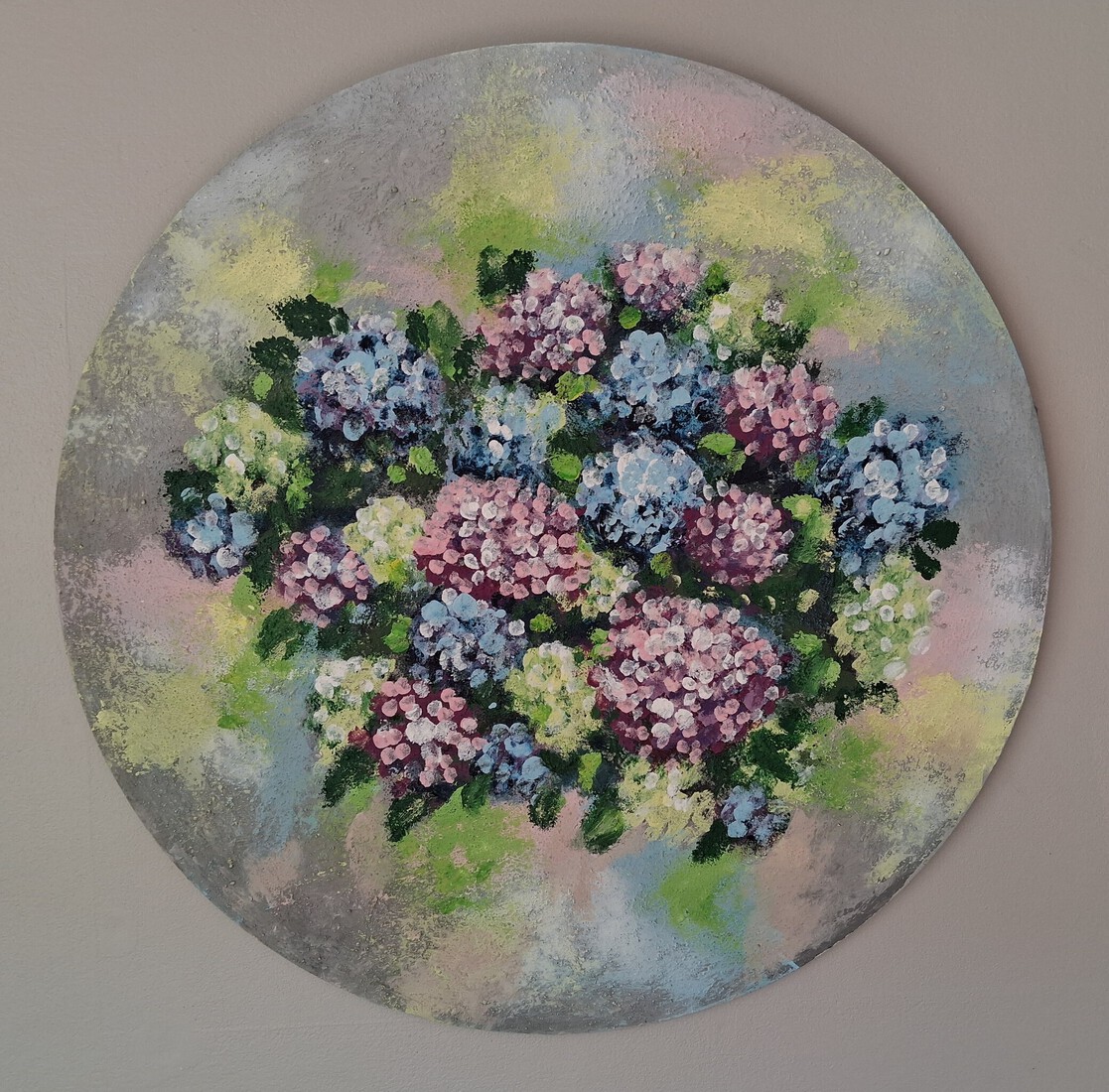 Rond hortensia schilderij 250505 — €150,00
