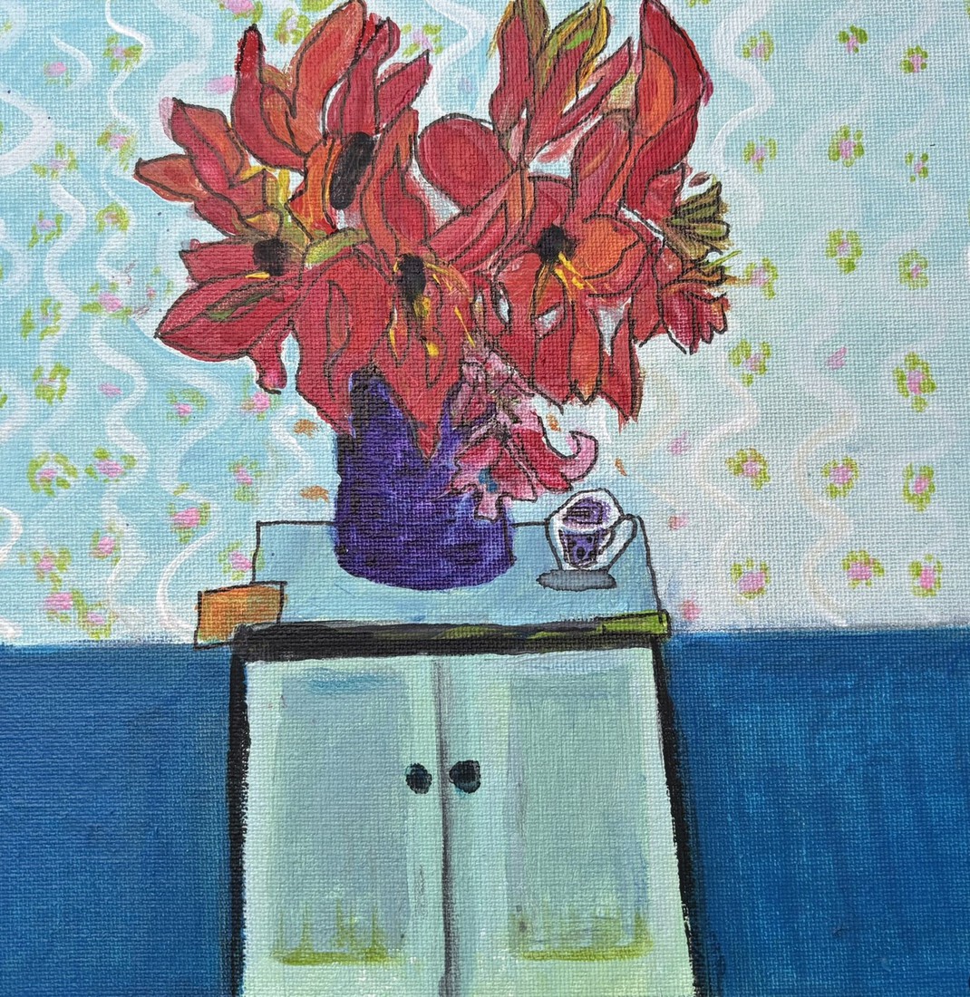 Bloemen op kastje