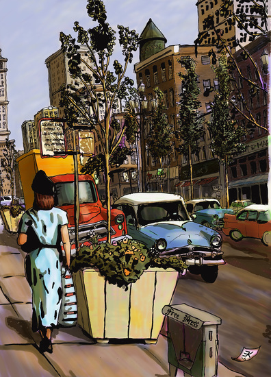 Skyline Bossche Markt, collage schilderij MARQUA280