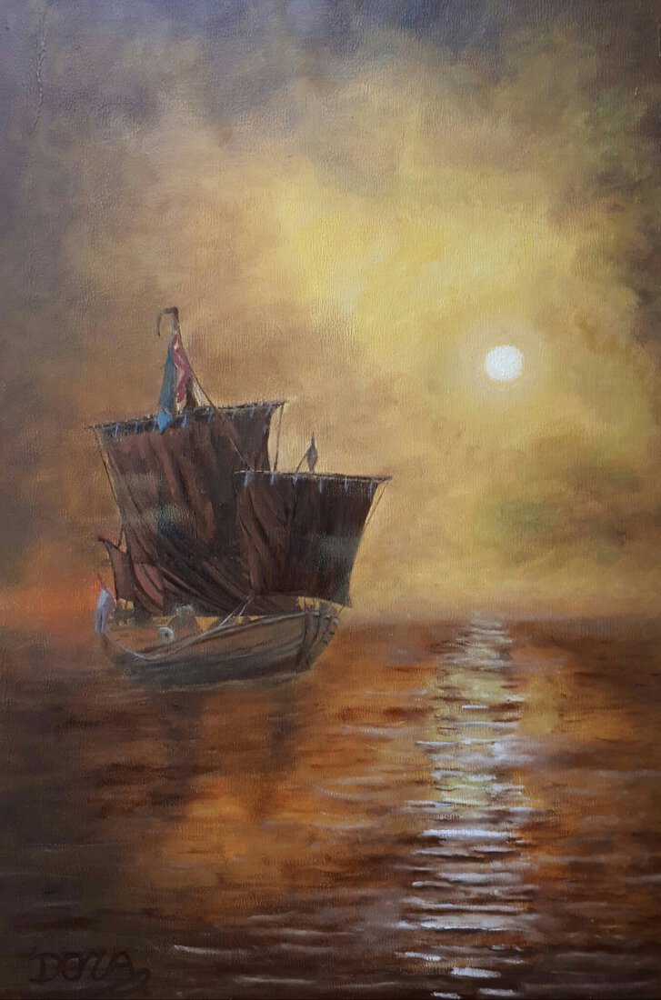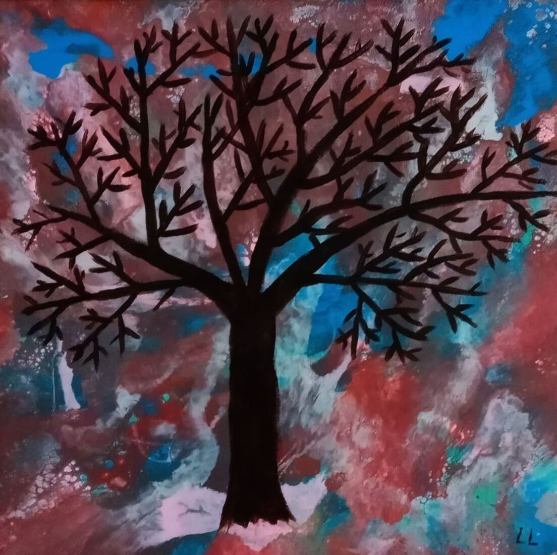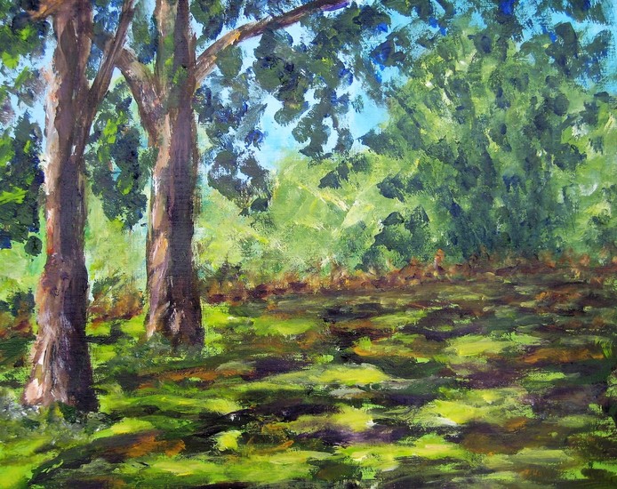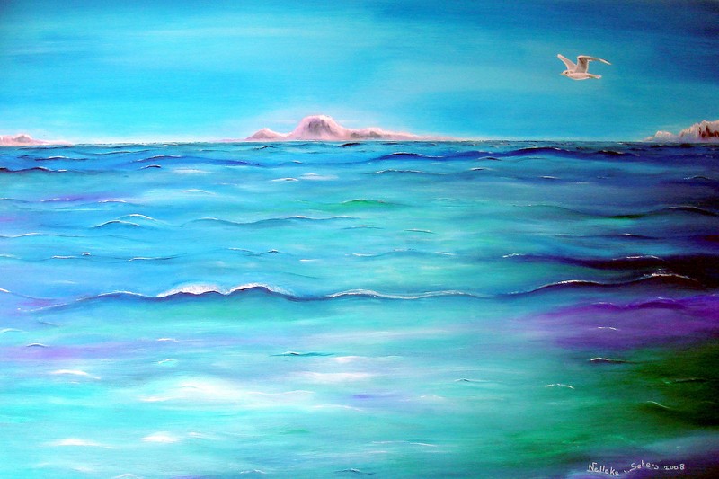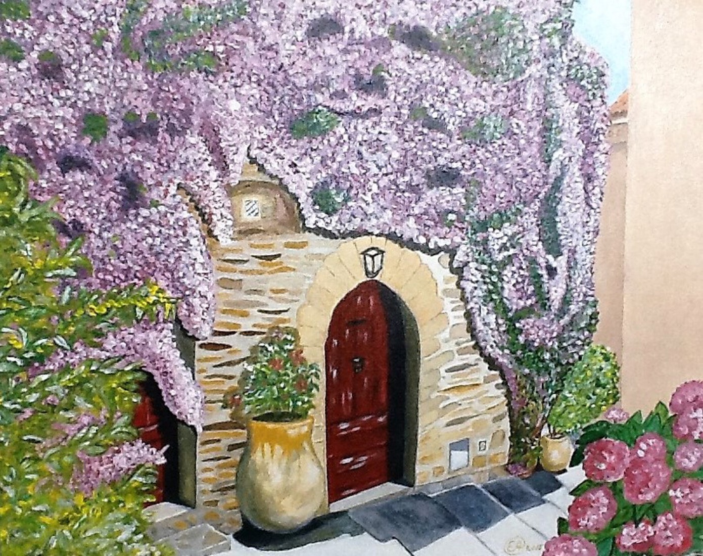 'Zweedse huizen aan een plein' - een acryl-schildering op papier - * gratis kunst / nog beschikbaar