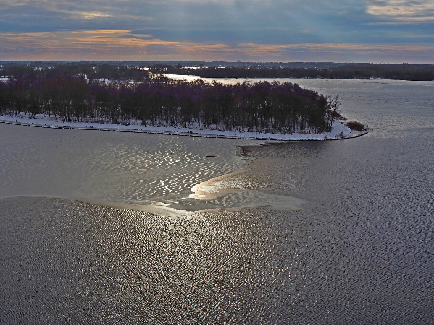 Ondergaande zon over de rivier de Maas