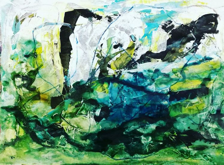 'Snelweg' - gouache nr. 6.433; abstract landschap - * gratis kunst / nog beschikbaar
