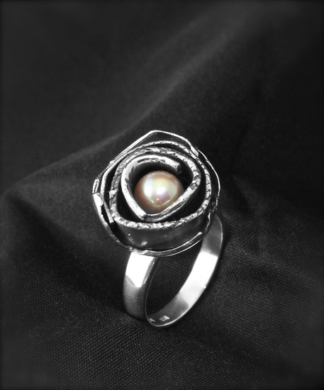 Zilveren ring met roze zoetwaterparel