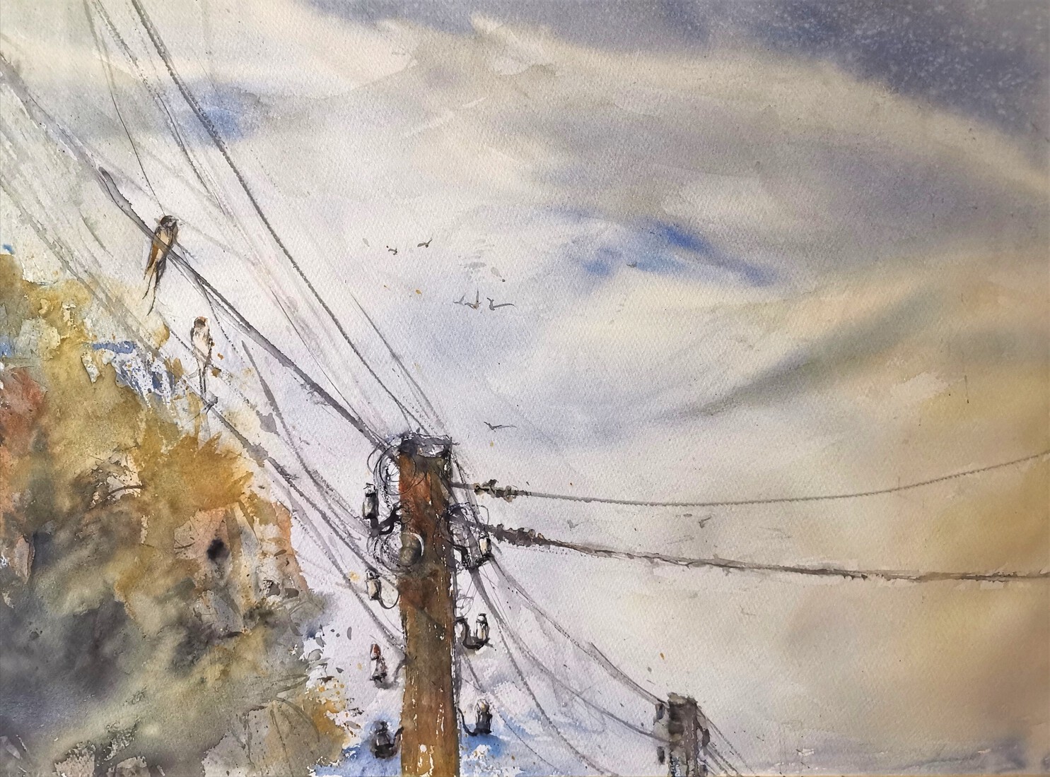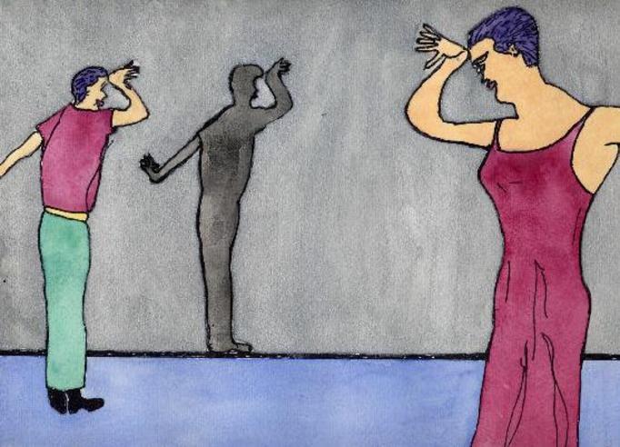 295-"2 liggende mensen in spijkerbroek l". — €65,00