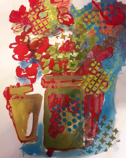 'Stilleven met fruit' (nr. 7.008) - klein werk op papier - * gratis kunst / nog beschikbaar