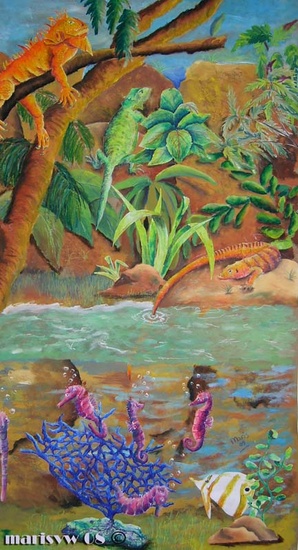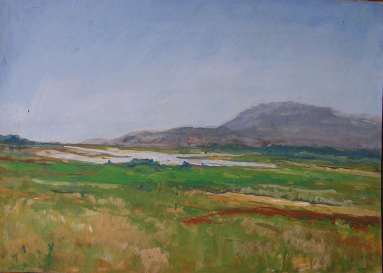 kustlandschap van Sillon de Talbert in Bretagne, Frankrijk - gouache, schilderij op papier, Paul Werner