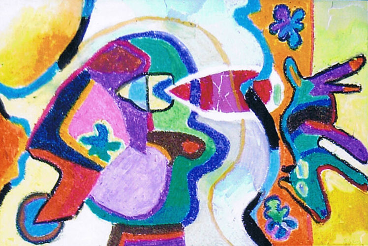 Circuscirkel, 'de wereld rond'. Werk voor kinderen in kleurpotlood, op mathematische wijze gerangschikt