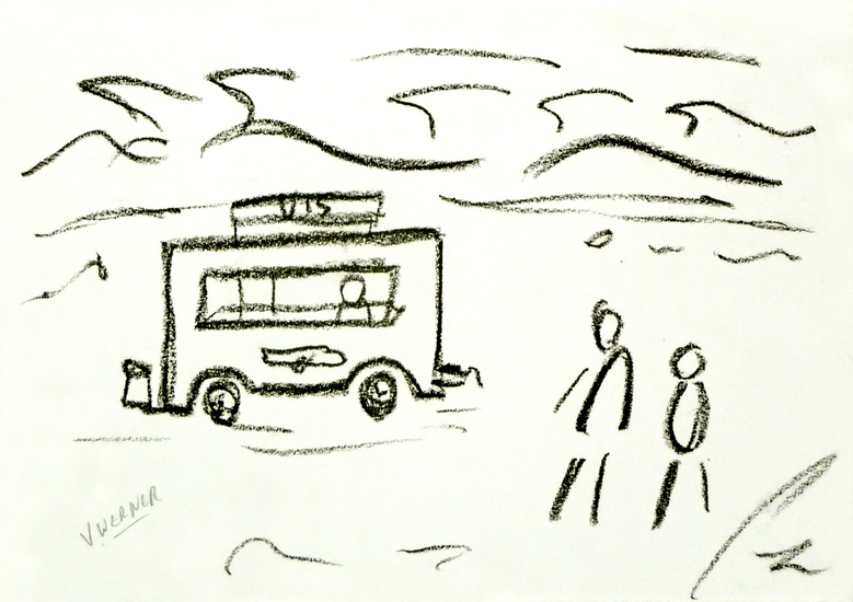 VISKRAAM op het STRAND - zwart wit tekening, te koop — €150,00