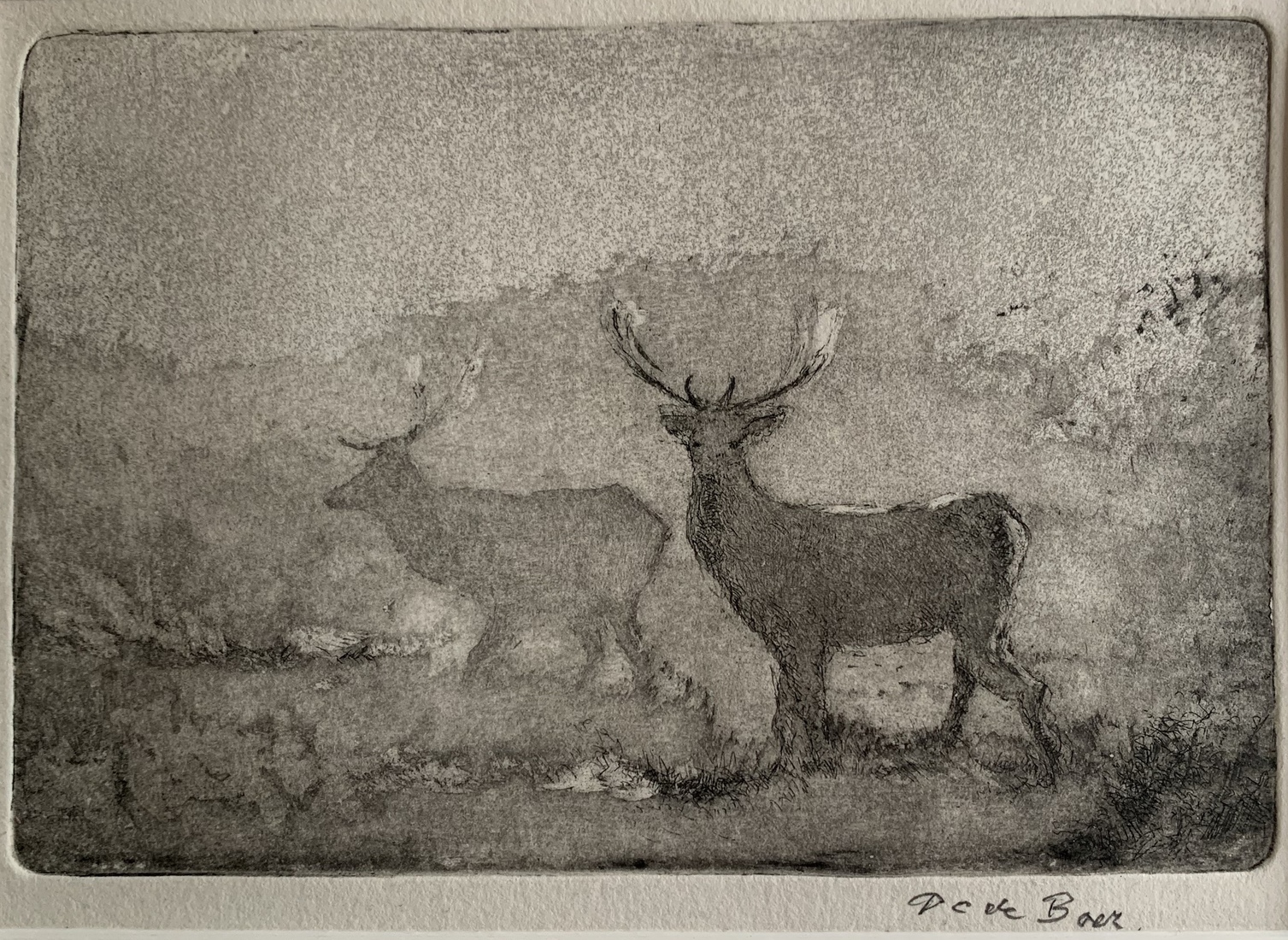 Herten in de mist