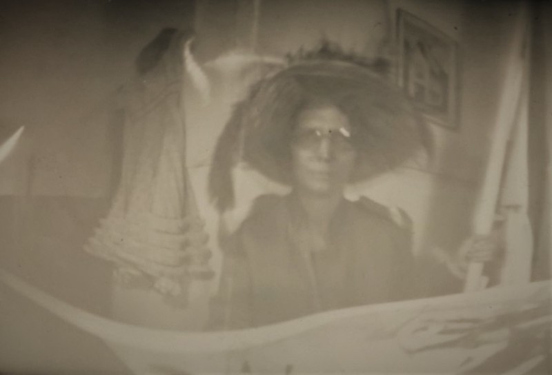 stoel en doorkijk met figuur