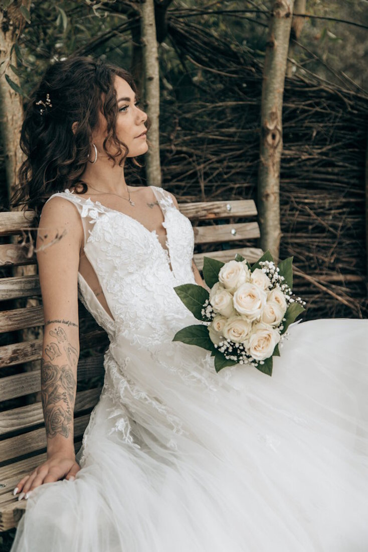 Bruid op bankje