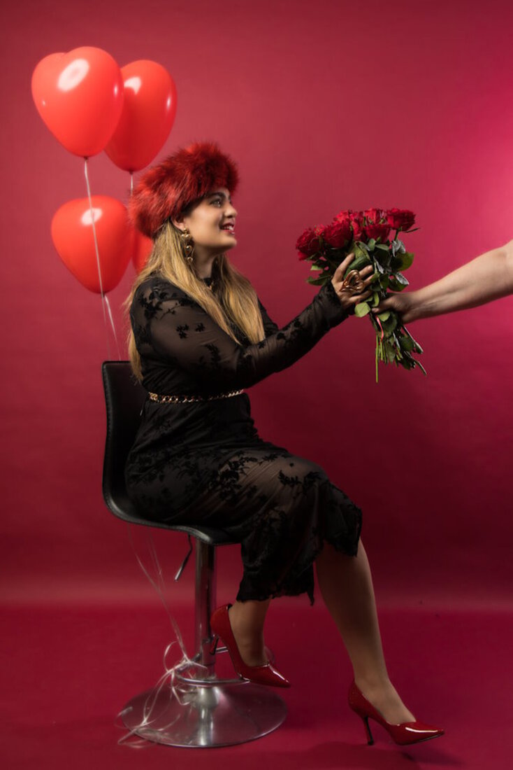 Model krijgt Valentijnboeket