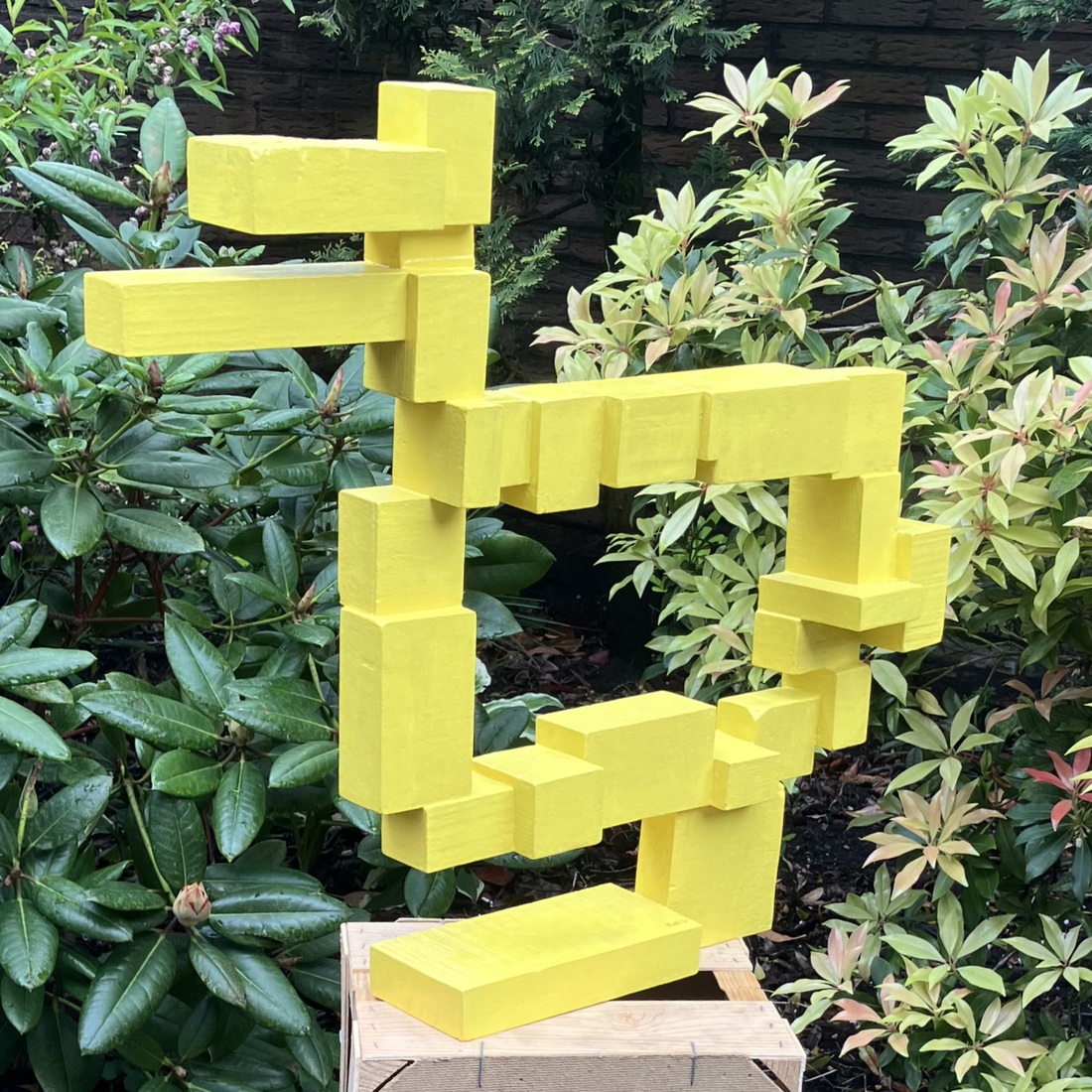 Aiyanar paard, oranje albast op sokkeltje van springstone. Jan. 2026