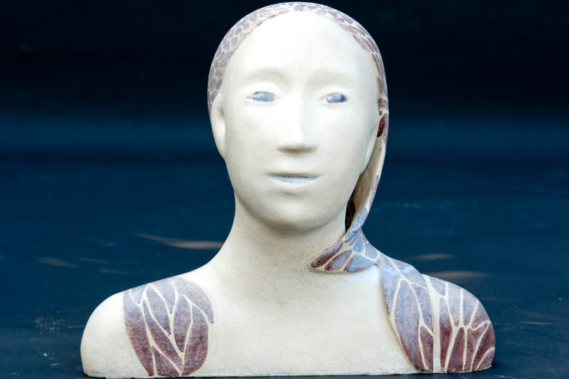 Jeannine, . Verbrandt de pijn en begin opnieuw. Keramiek borstbeeld,