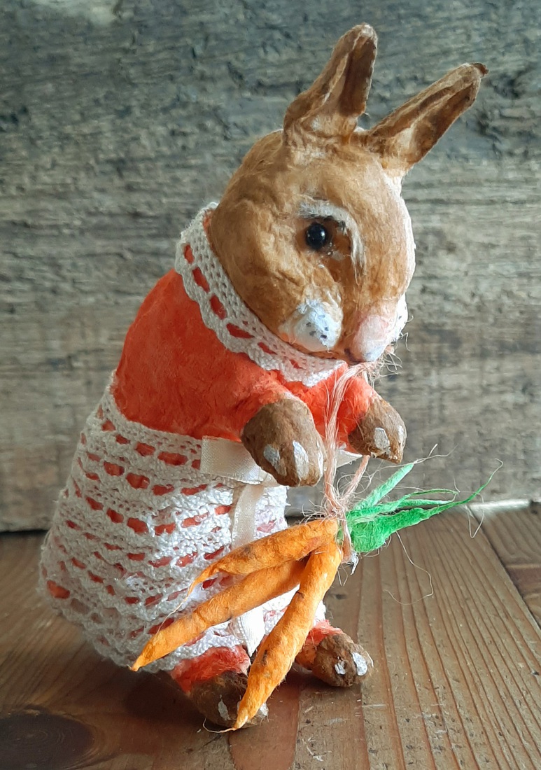 Wattenpopje Paashaas bruin met bosje worteltjes
