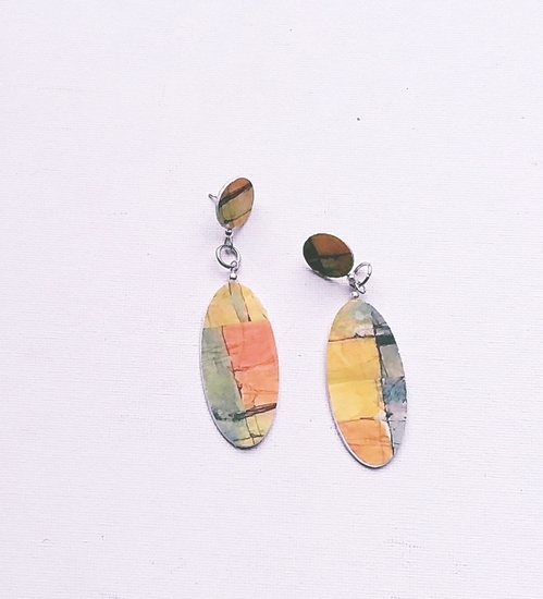 zilveren oorhangers met plaatje mokume