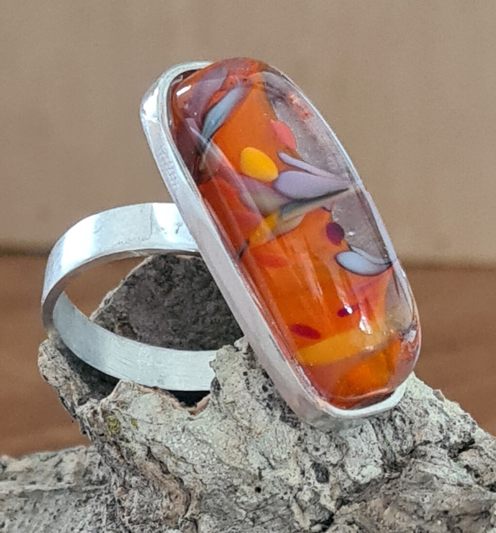 zilveren ring met handgemaakte steen van murano glas