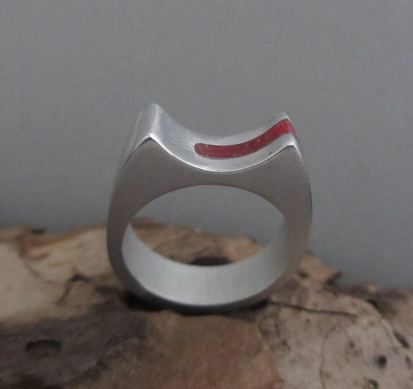aluminium ring met rood kunststof