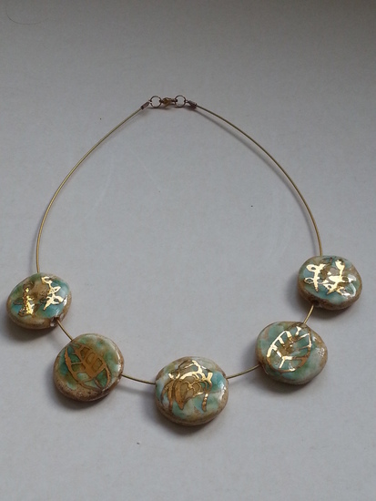 ketting, platte kralen met goudluster