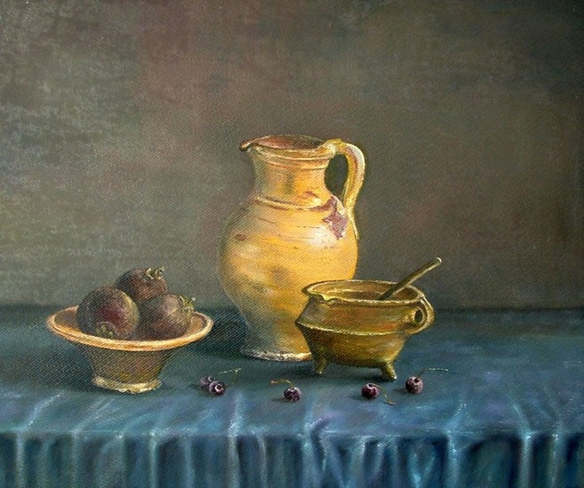 stilleven, mijn eerste olieverf.