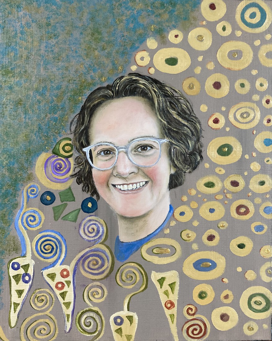 Rubi in green, orange and blue
