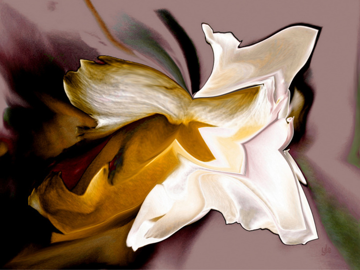 Abstracte wit/okergele roos