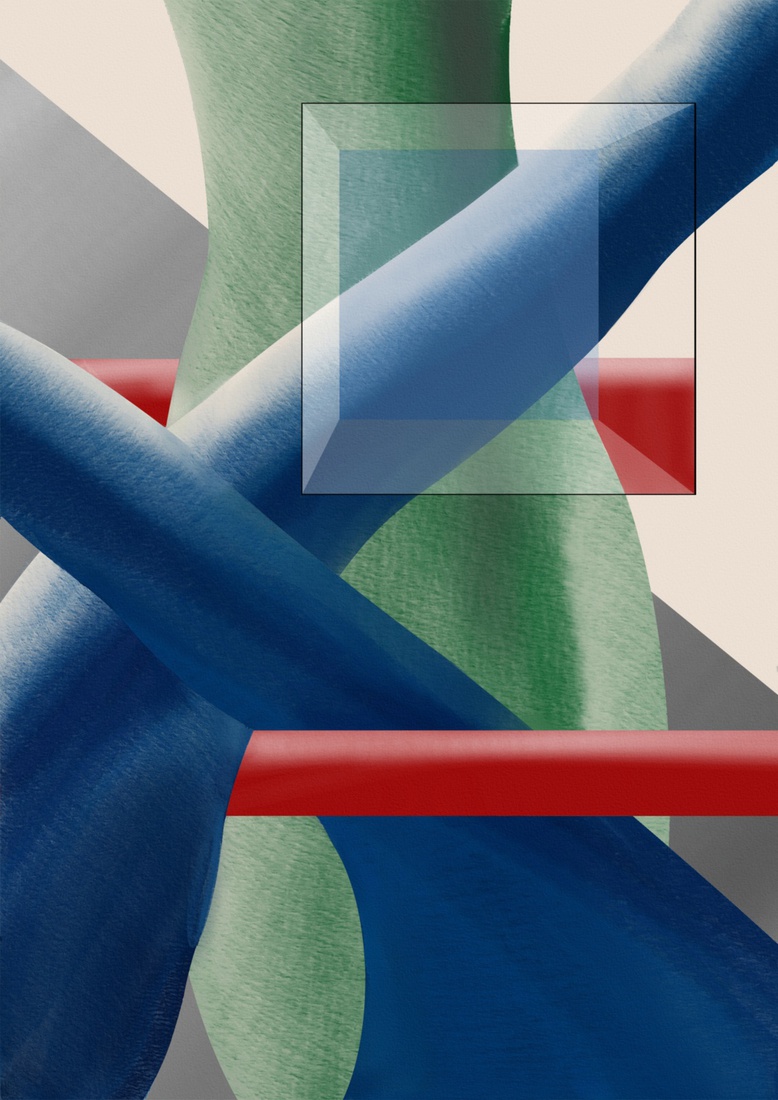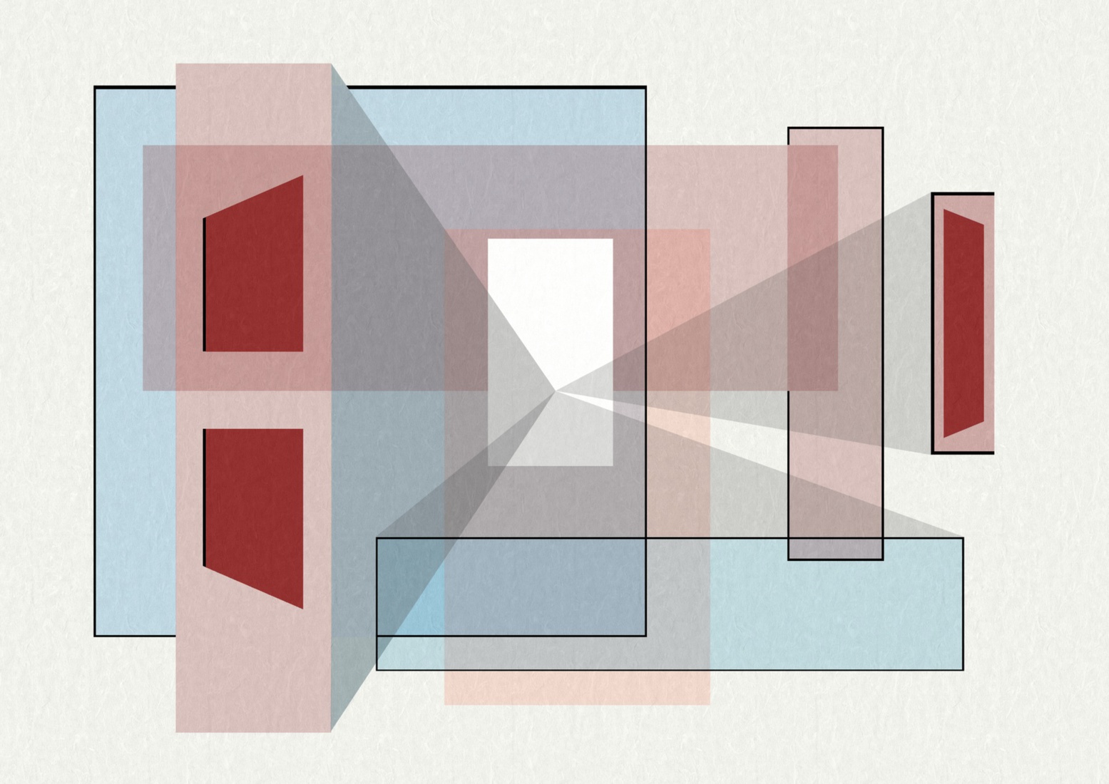Computerart Rechthoek in perspectief en viervoud nr. 1