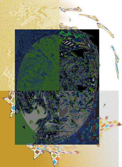 Computerkunst met onregelmatige vijfhoek rondom achthoek bijvoorbeeld voor geometrisch kerkraam