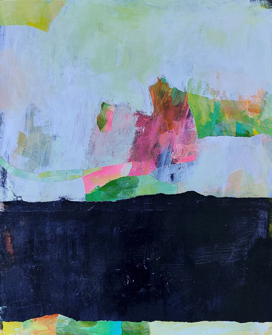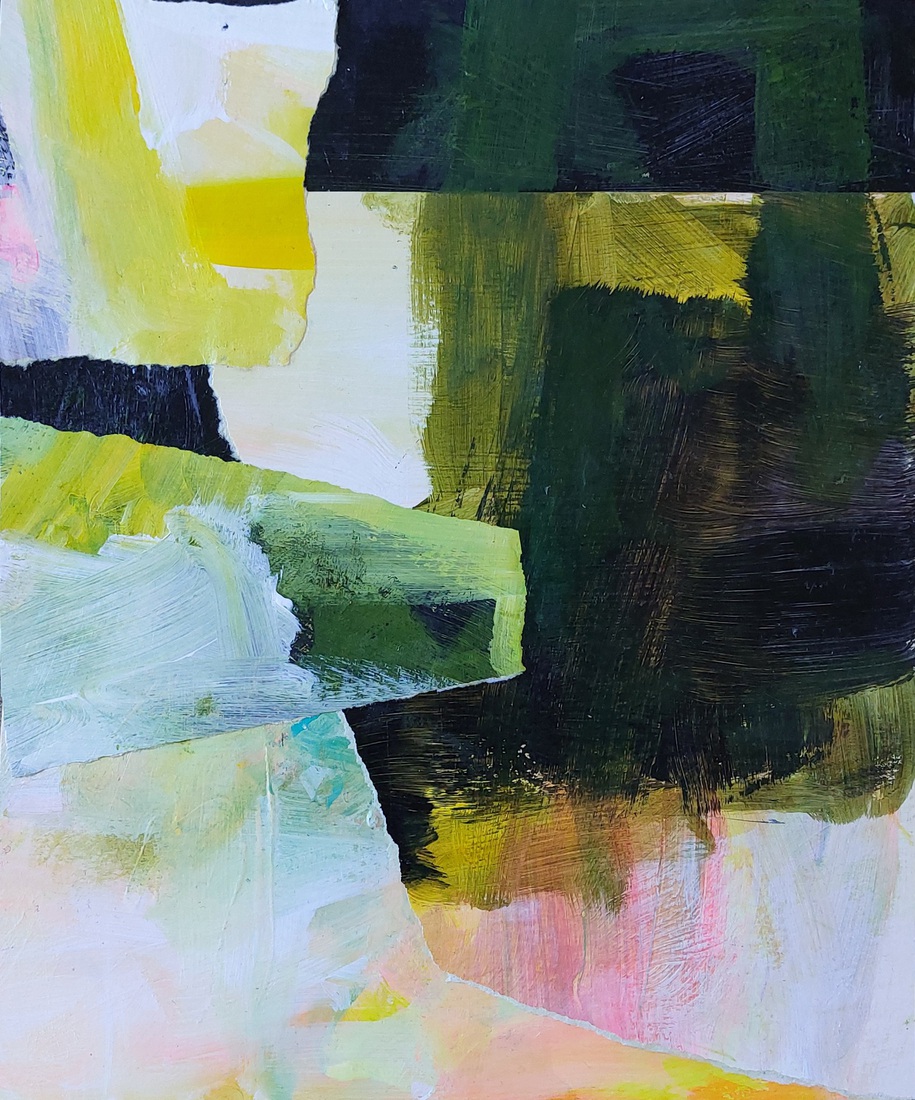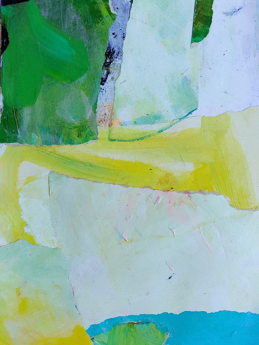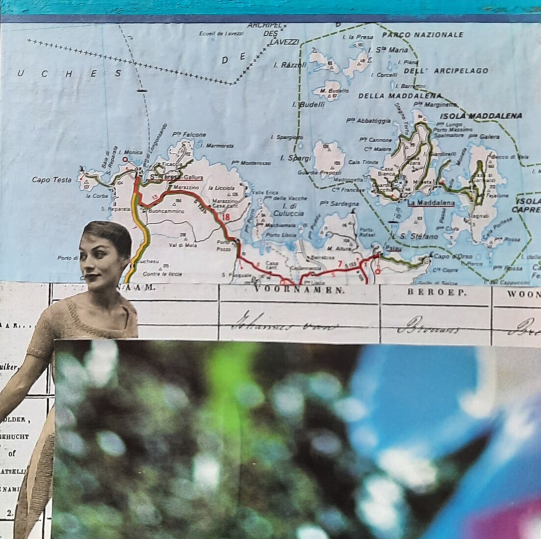 "Park bij nacht" collage op board, h56xb88cm. 2023