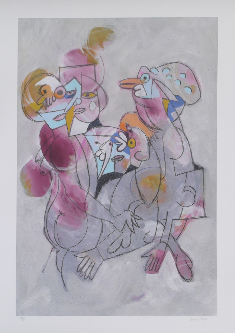 Hommage aan Pablo Neruda, Salvador Allende en Siqueros, litho - politieke grafiek van Paul Werner