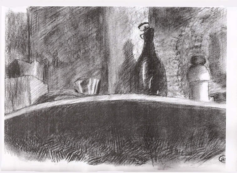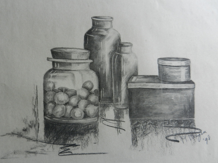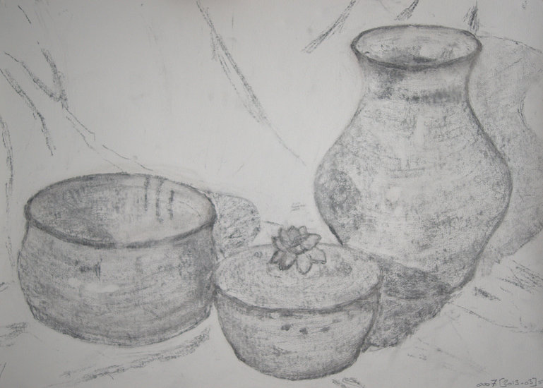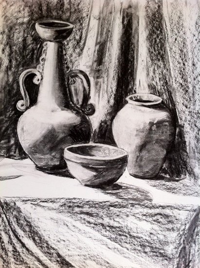 Stilleven potten/vazen, Houtskool