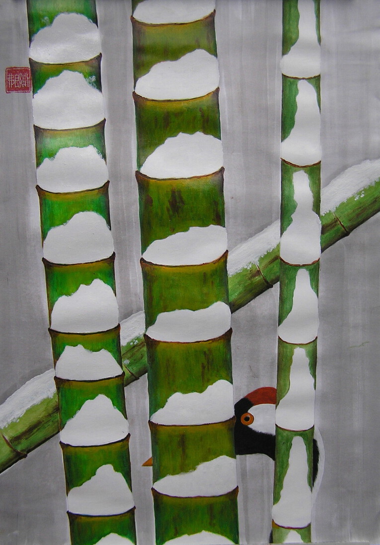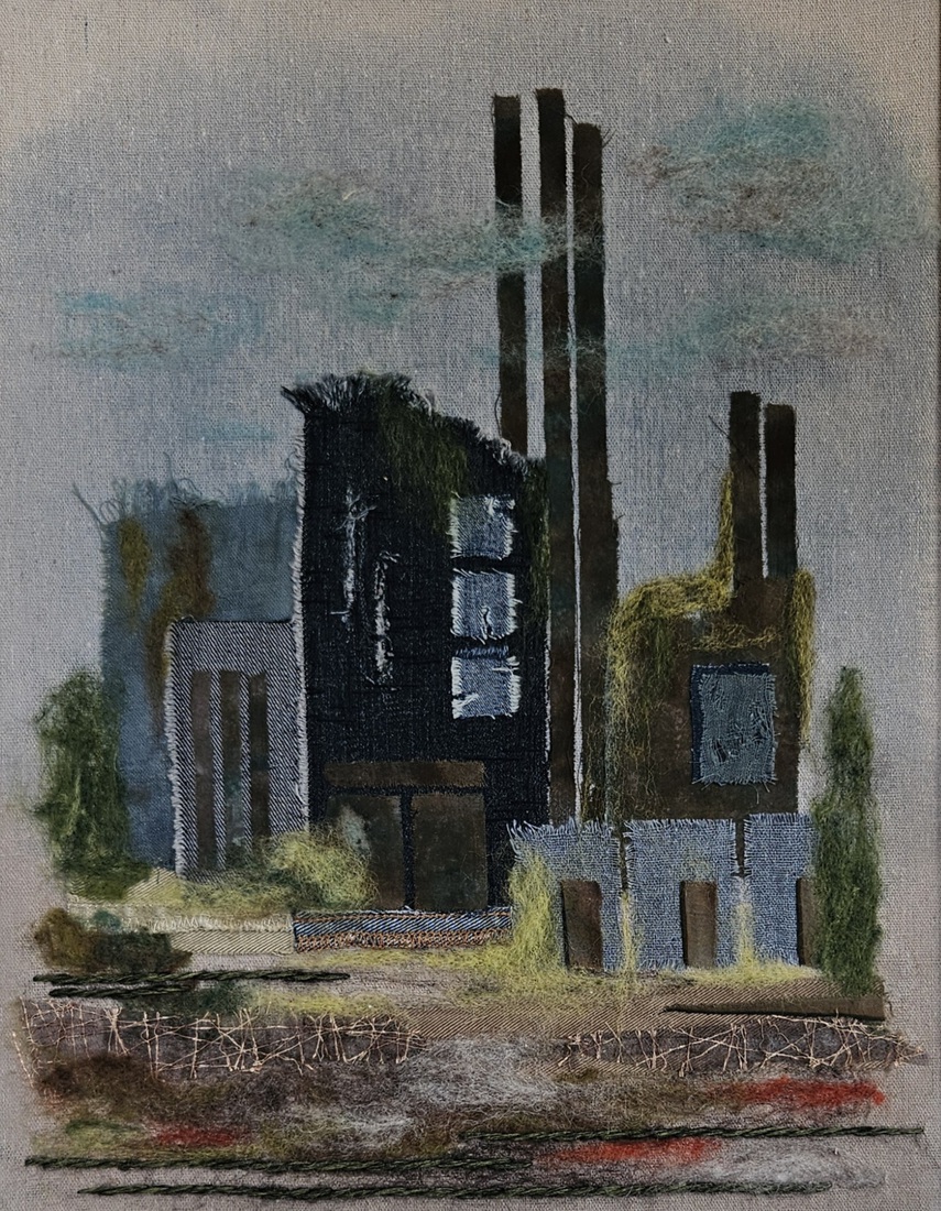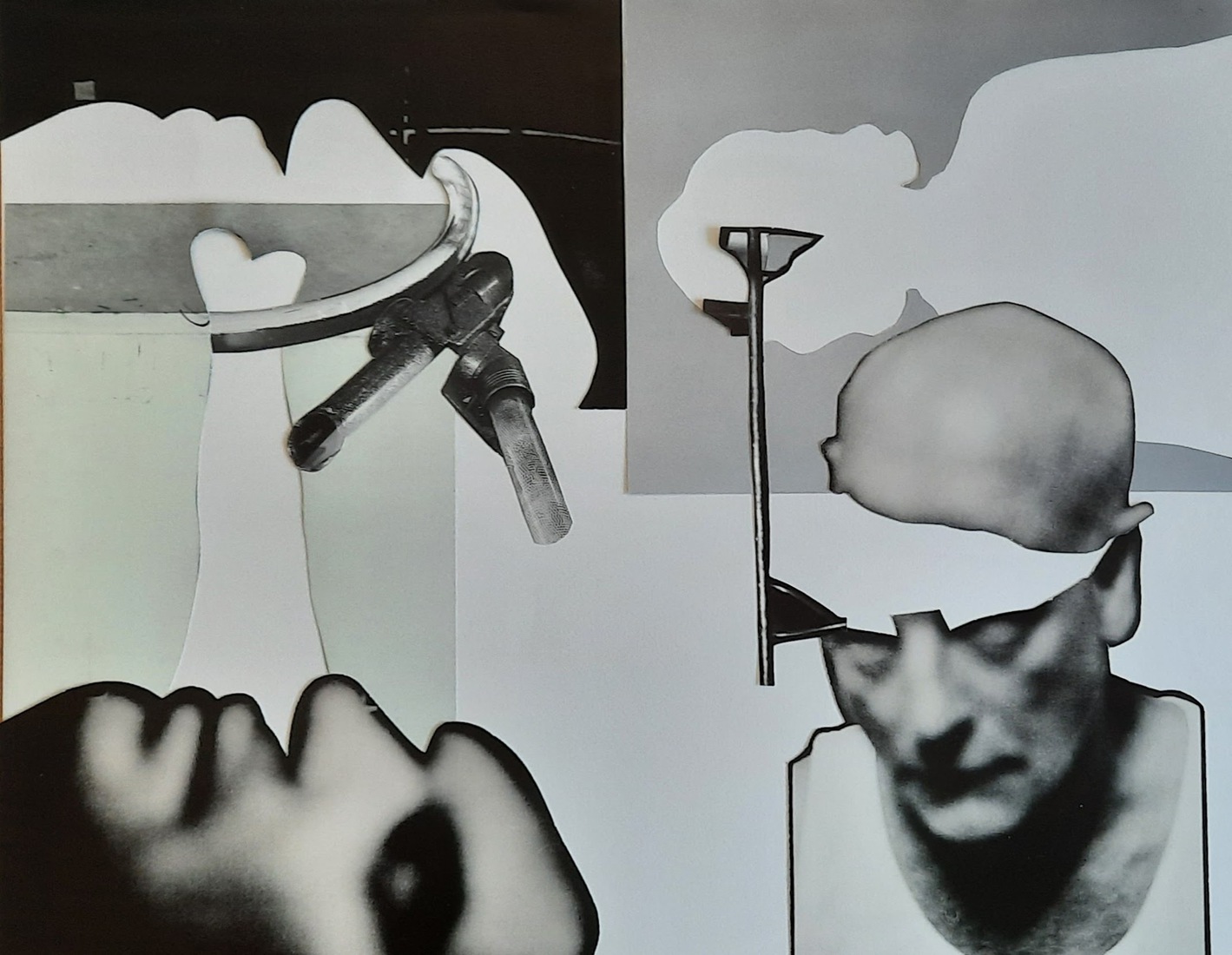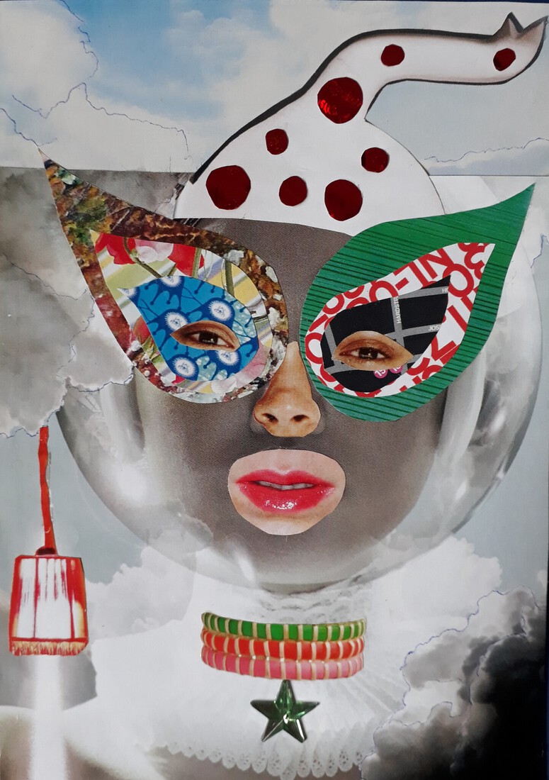"In gedachten verzonken" collage op papier. h46xb36cm. 2023