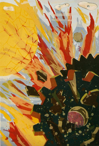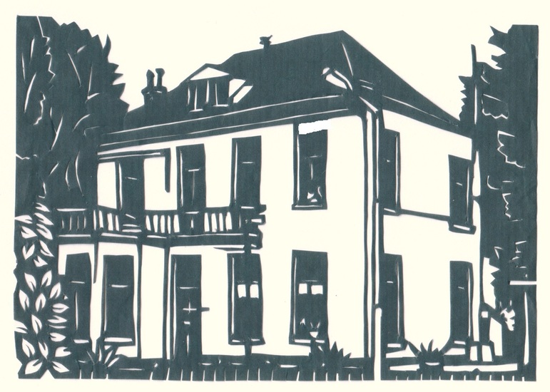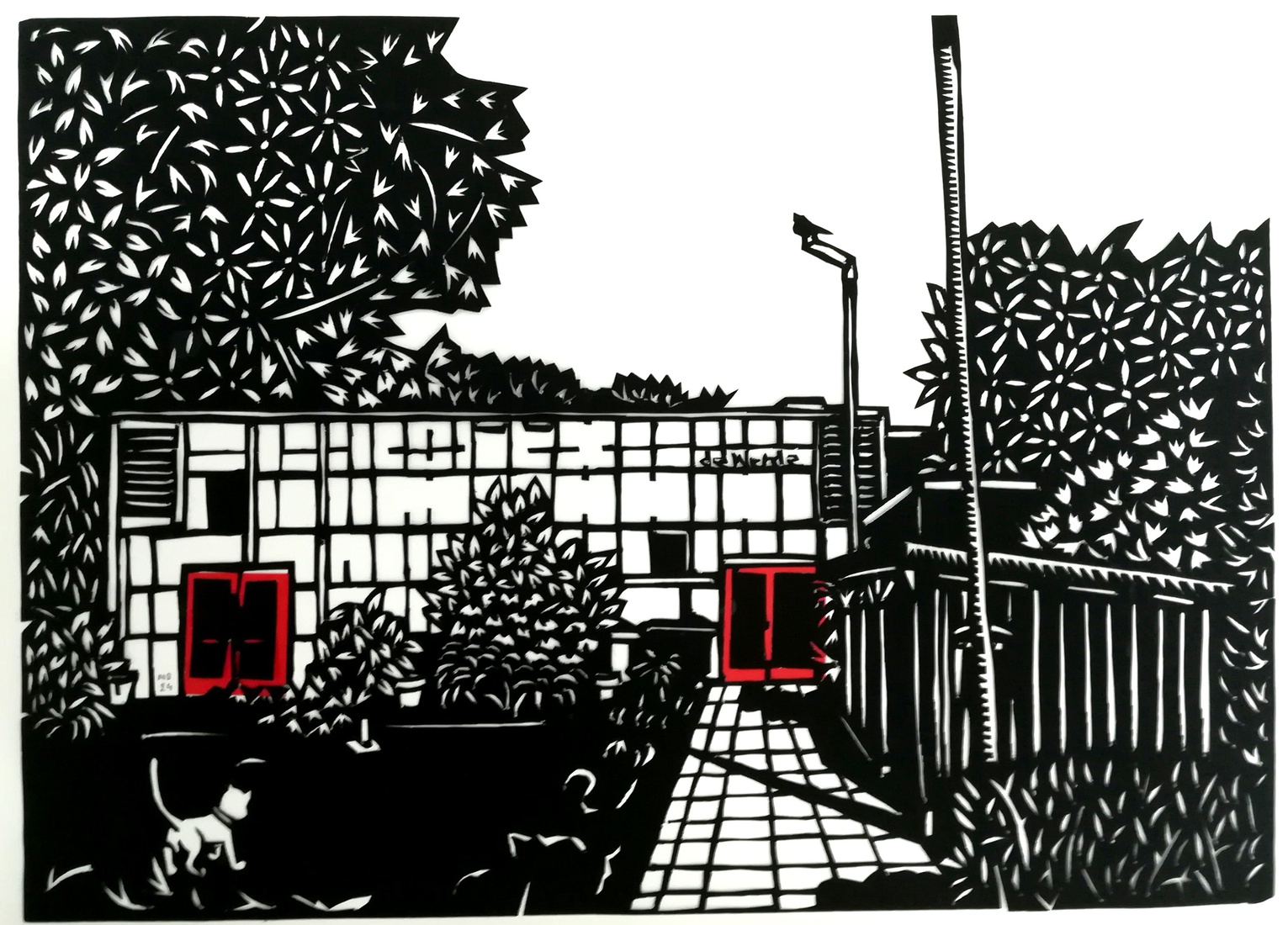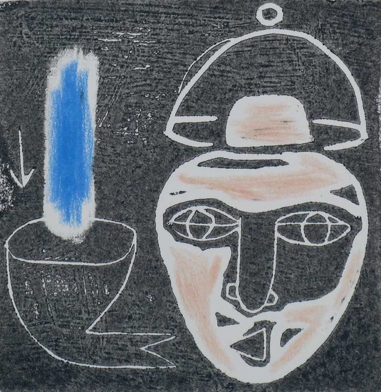 labyrint prent inkt op handgeschept papier