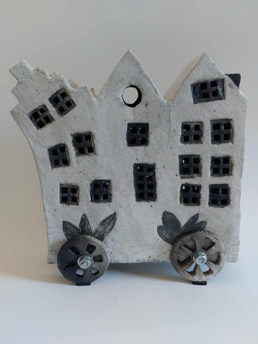 Huisjes op wielen met bloemen