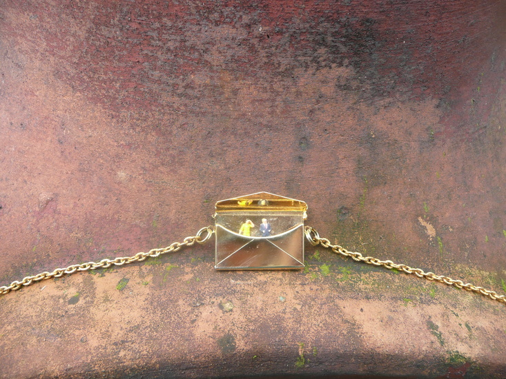 Biwaparels op schakels van staaldraad en zilver — €60,00