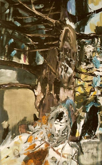 27 Een groep goudhaantjes in een omgewaaide sparrenboom. — €2800,00