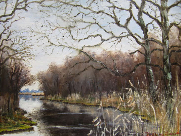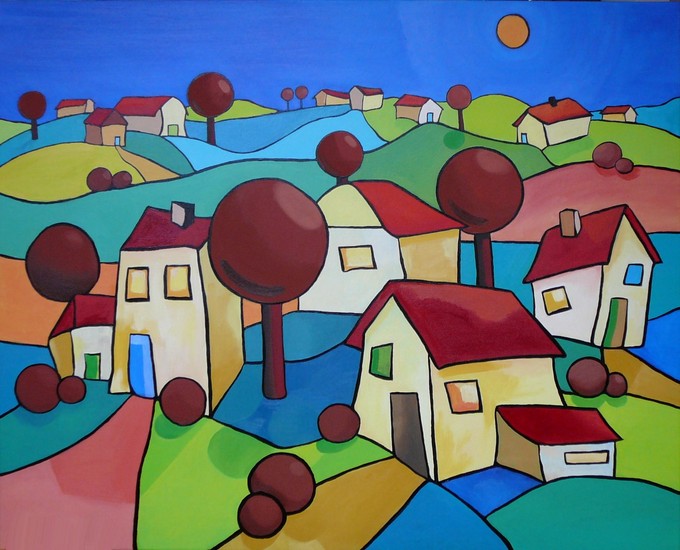 Een serene tropische zonsondergang. Techniek: Olieverf. Afmeting: 50cm x 50cm — €100,00