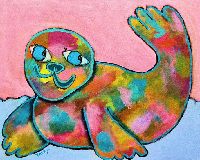 zeehondje op weg naar zijn vriendjes