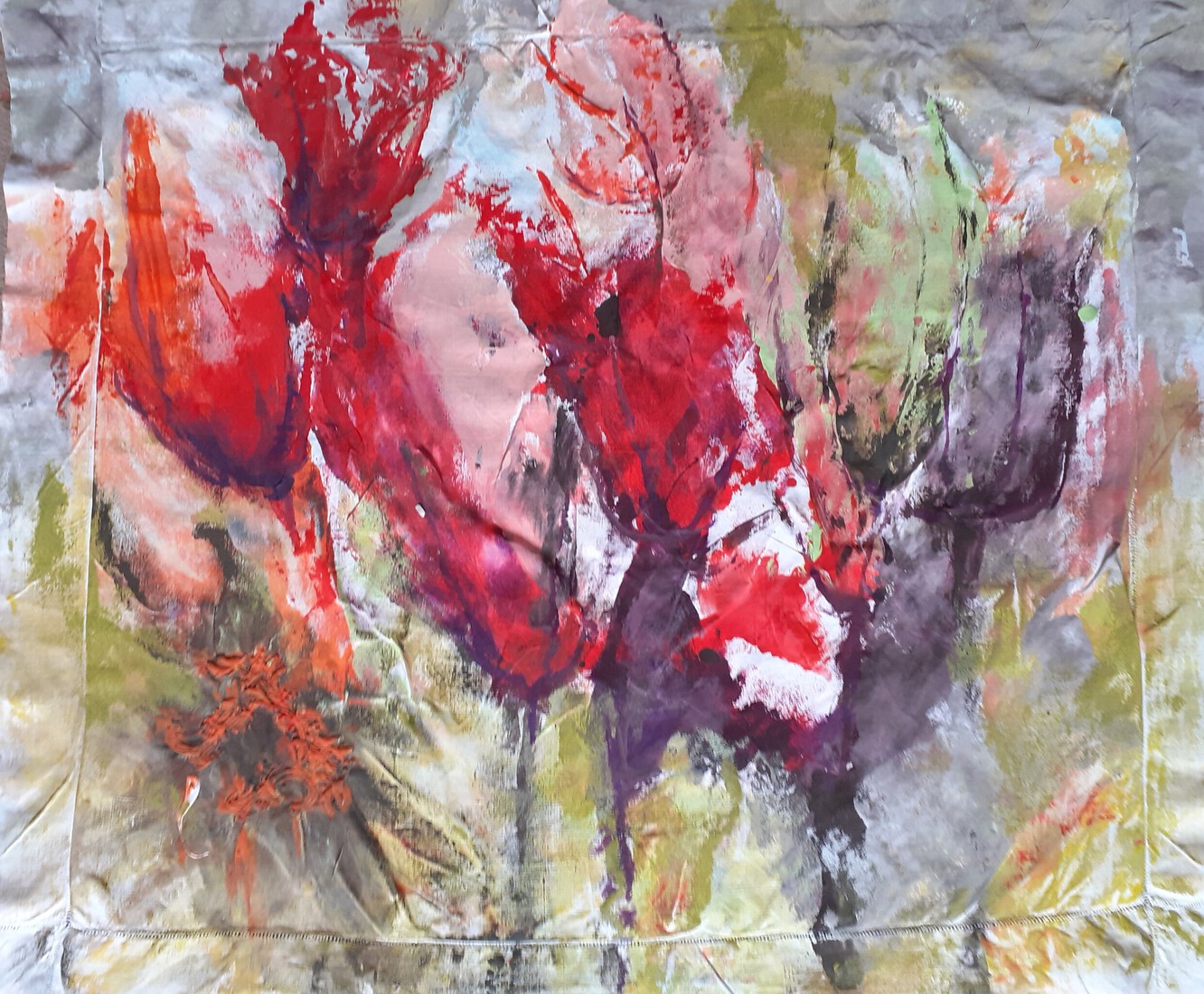 Klaprozen op oud kussensloop