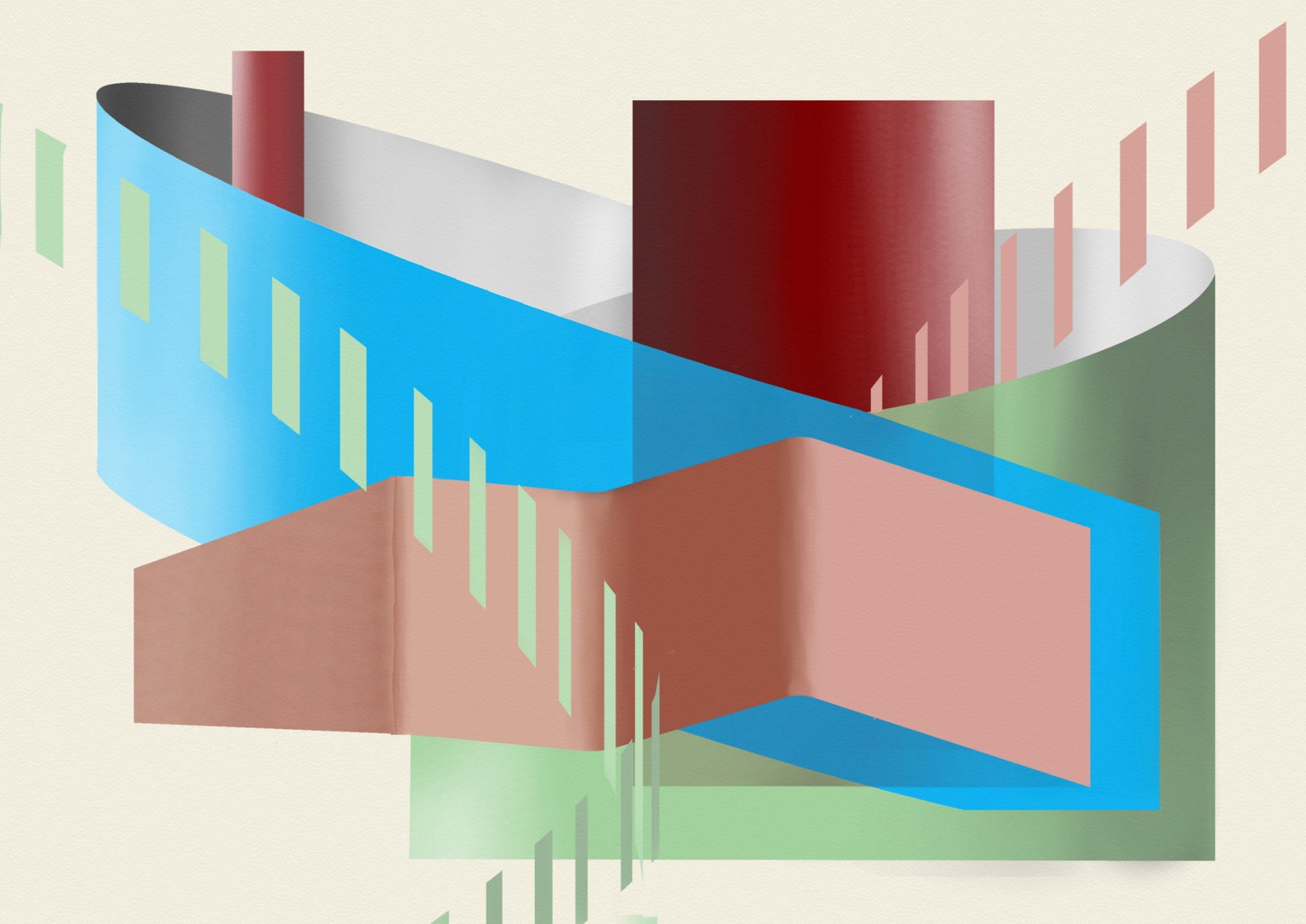Computerkunst met onregelmatige vijfhoek rondom achthoek bijvoorbeeld voor geometrisch kerkraam