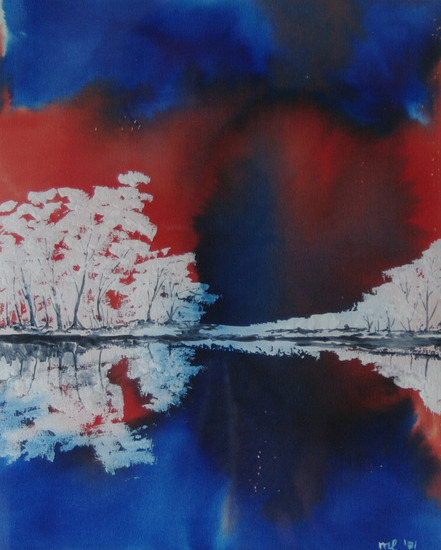landschap in rood/blauw