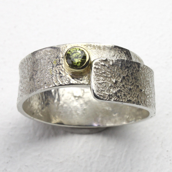 Ring van deels gesmolten zilver met een beetje goud. — €80,00