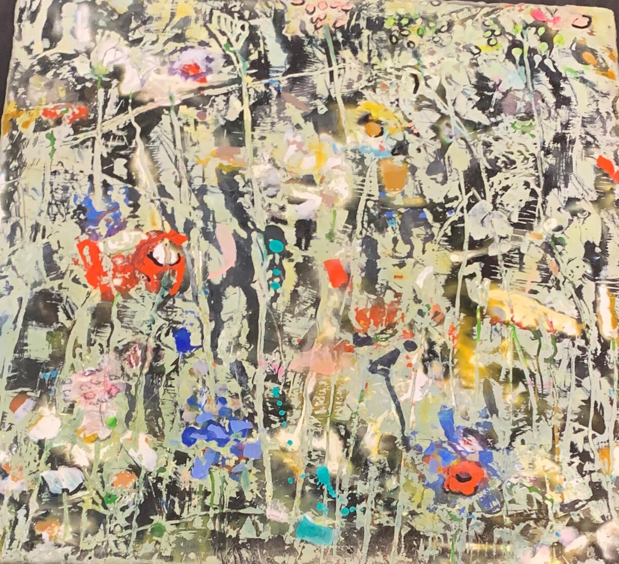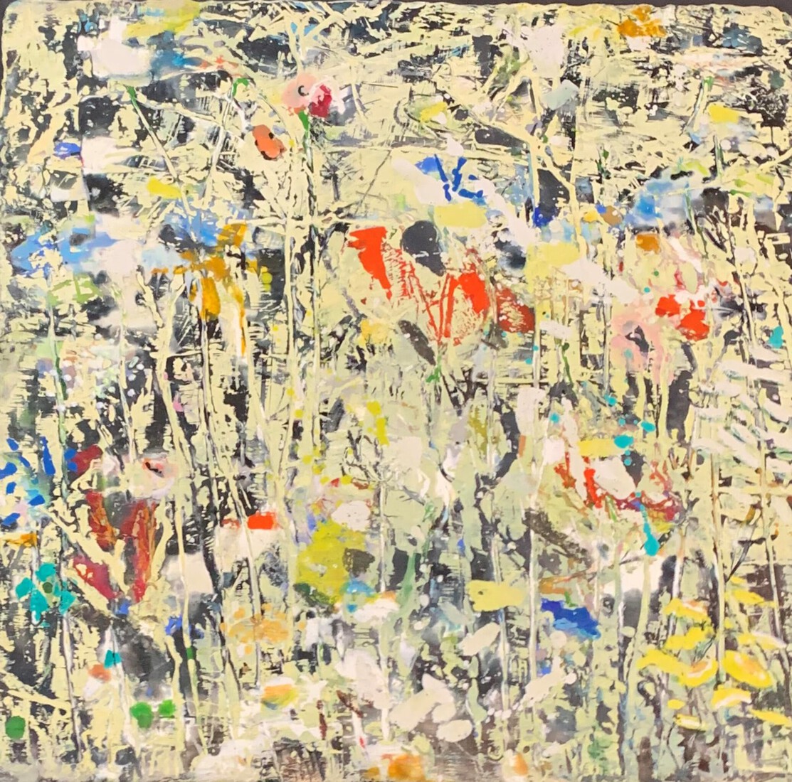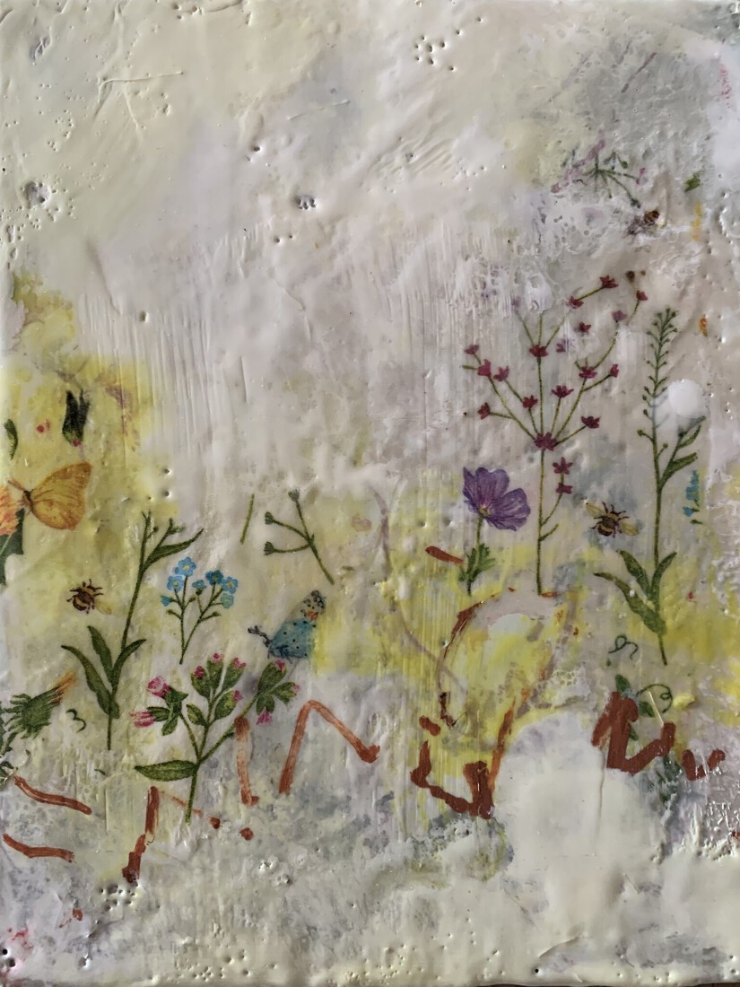 Bloemenpalet abstract geschilderd met bijenwas