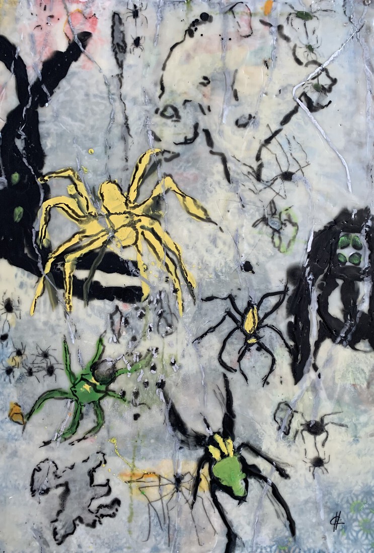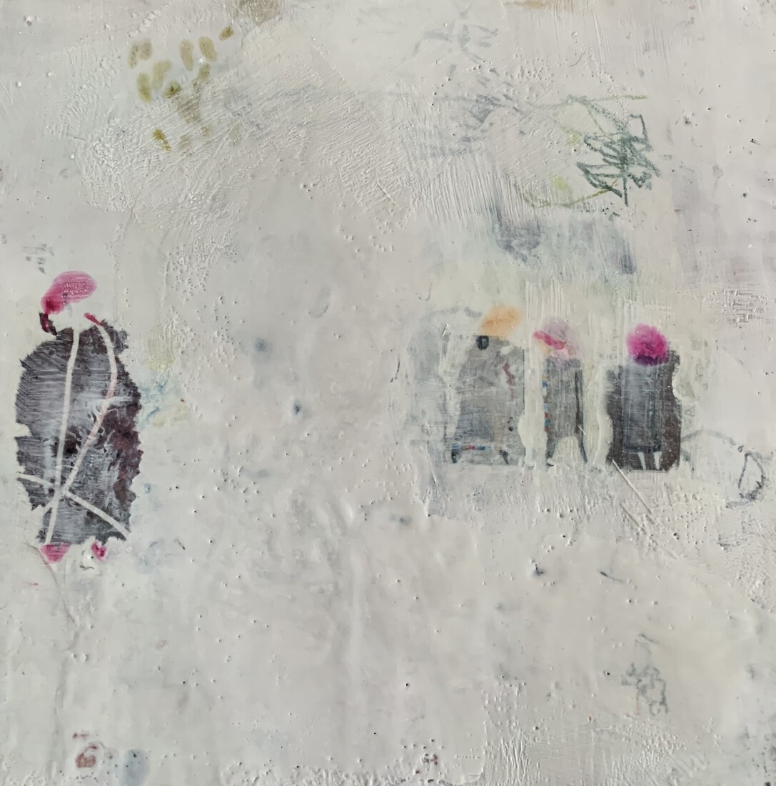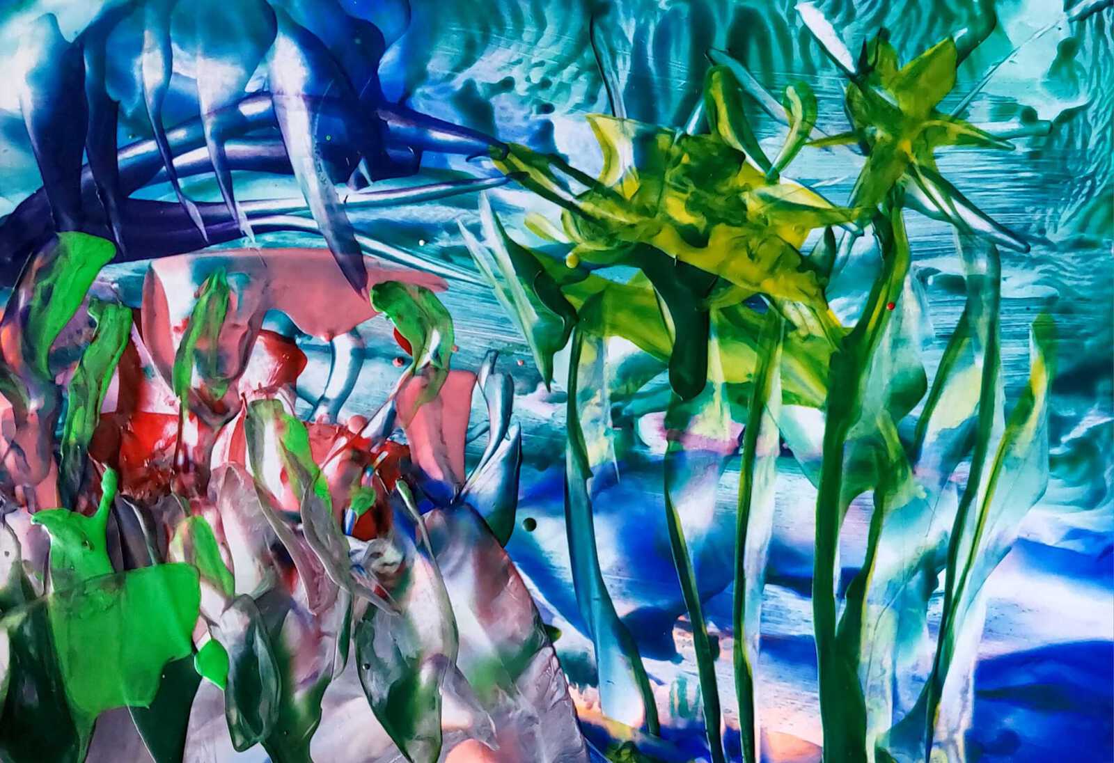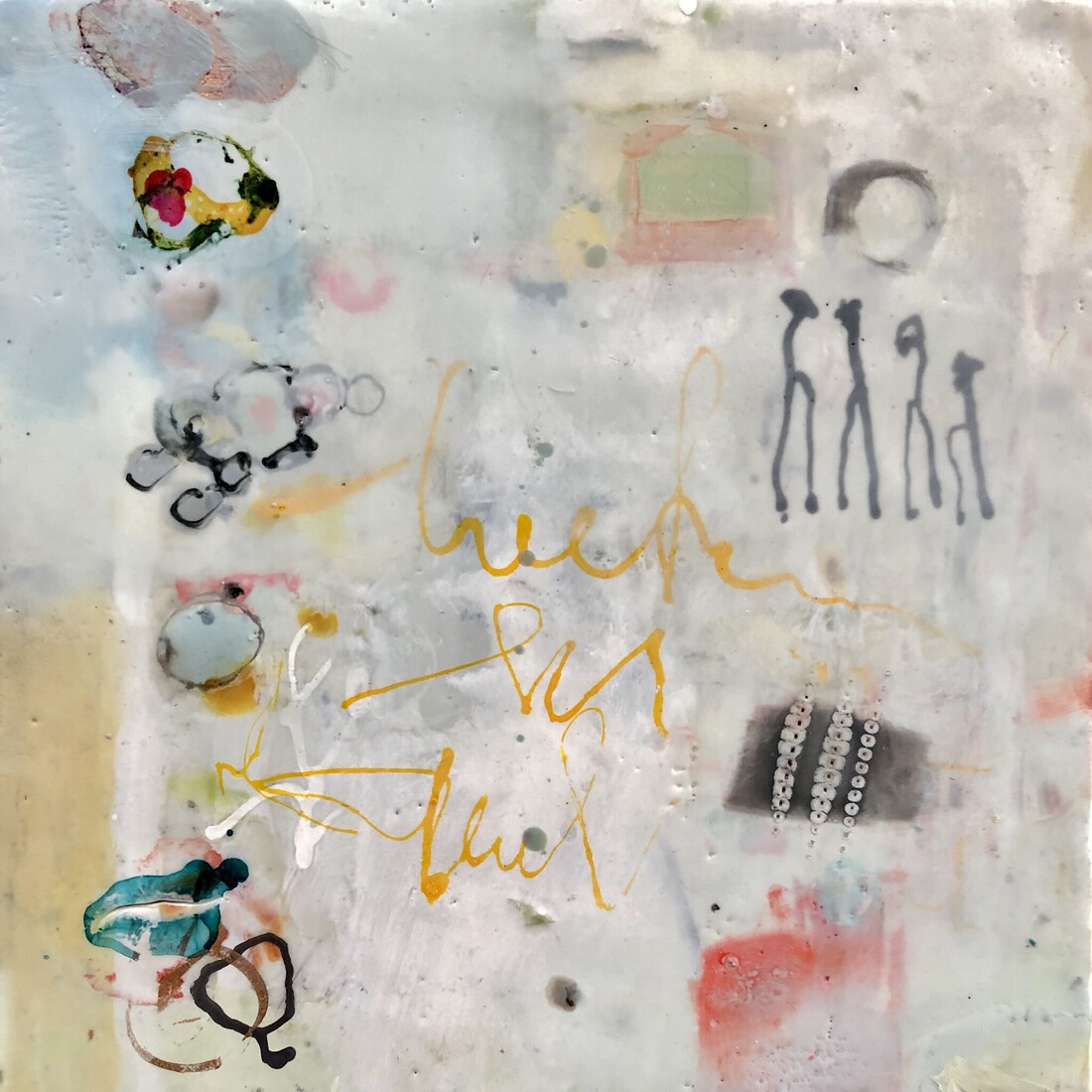 Bloemenpalet abstract geschilderd met bijenwas