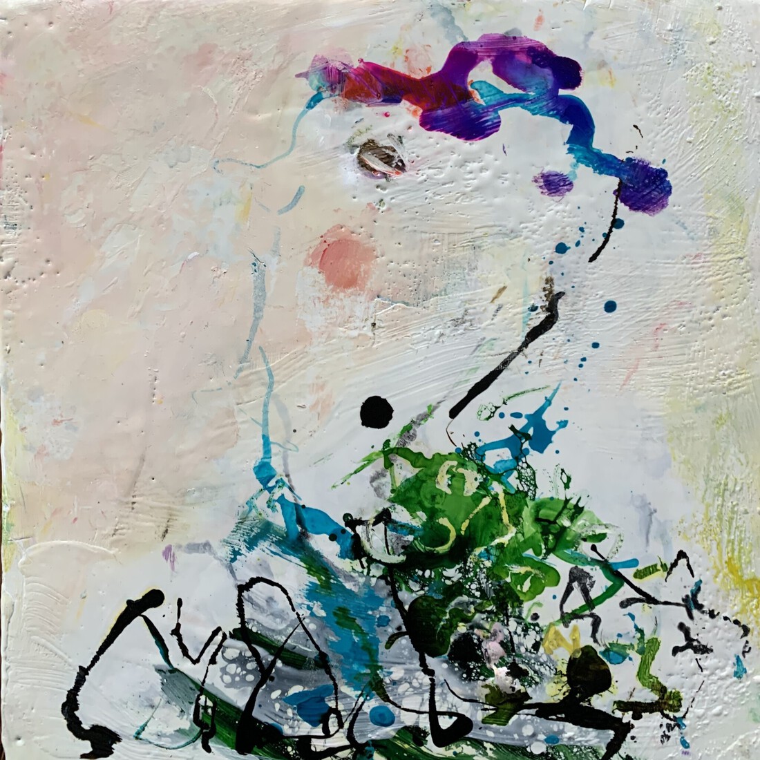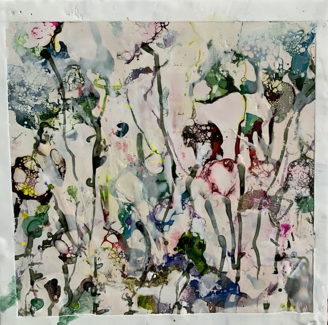 Kleurrijk bloemenpalet abstract geschilderd met bijenwas