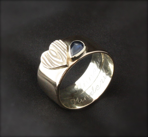 Gouden damesring met Saffier