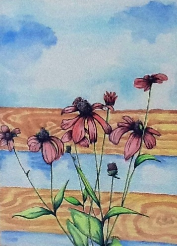 Zonnebloemen in Vaas, aquarel van bloemen.