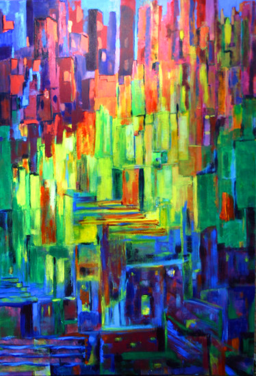 'Roelofs in town' - (nr. 4.066) groot abstract schilderij; gratis kunst, niet meer beschikbaar, Fons Heijnsbroek