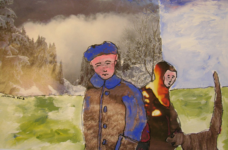 Laura aan het tekenen.