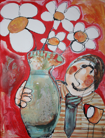 Wat zeg jij, vindt ze de bloemen mooi?